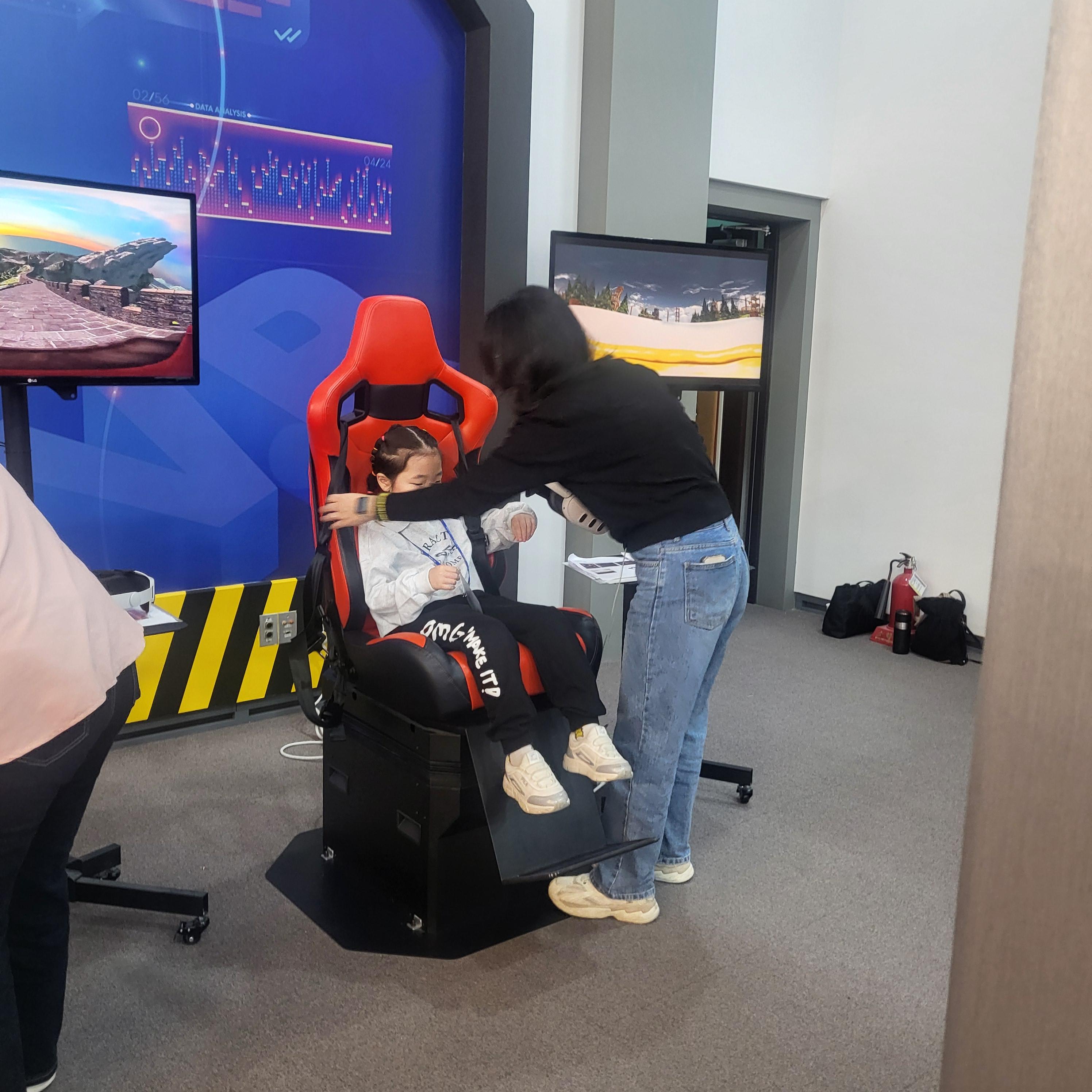 옆에서 안전을 체크해주시는 선생님들 덕에 즐거운 VR체험을 하는 연아~~ 우와 우와~