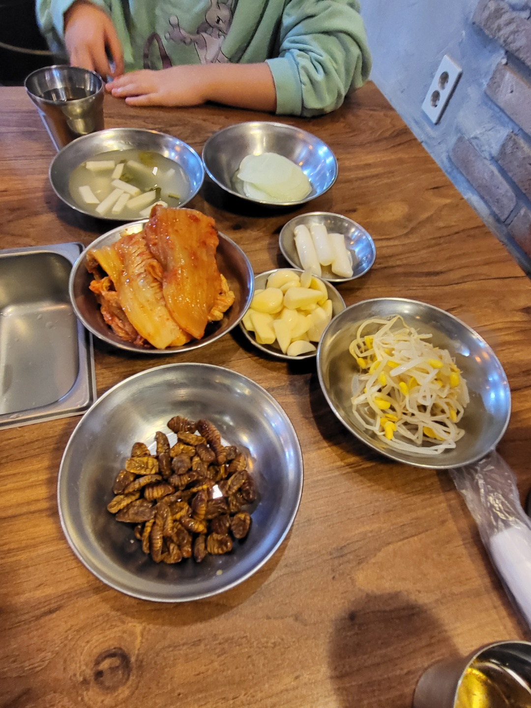 우선 삼겹살 2인분에 항정살 2인분 시키고~ 쇠주 하나 시켰어요~ 반찬이 나와요~ 오 번데기 오랜만 ㅎㅎ