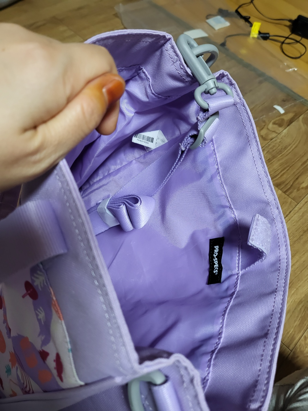 안을 들여보다면 수납하는 곳이 많아요~ 옆에 물주머니도 늘어나게 잘 있고 너무 이뽀요 ㅎㅎ